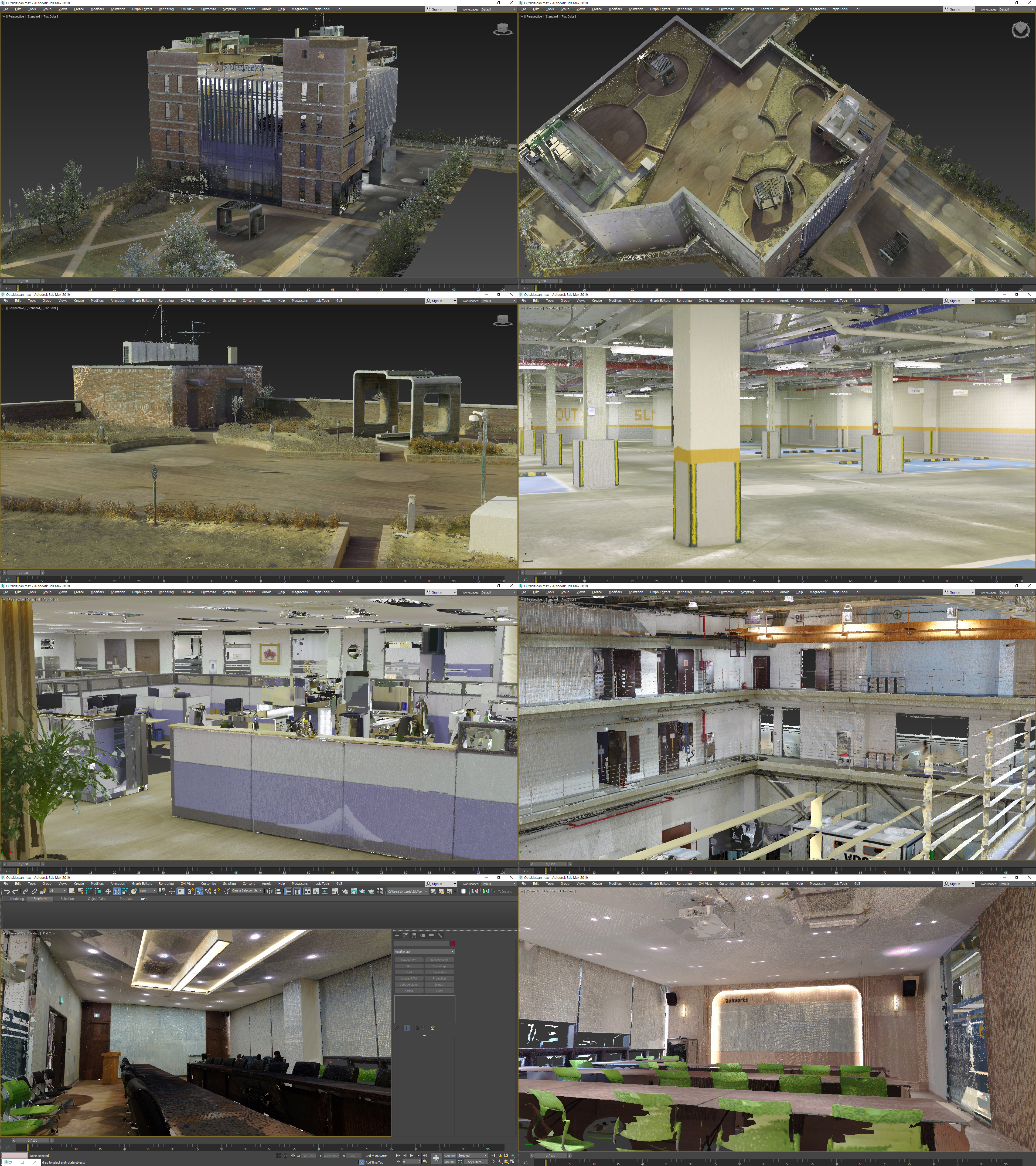 사옥 건물의 내부와 외부를 종합적으로 스캐닝합니다