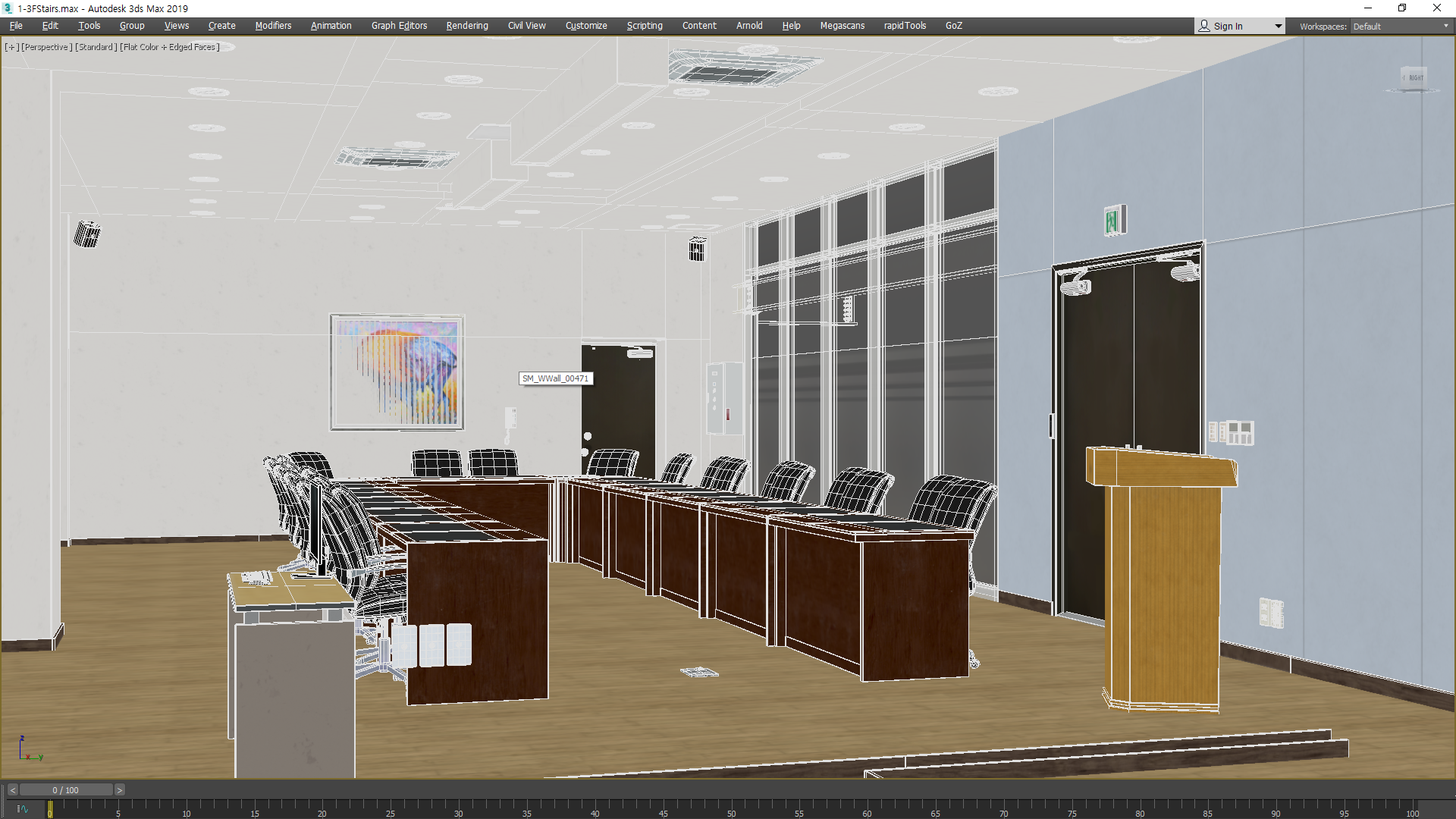 의자와 책상, 바닥, 벽체 등 객체별로 모듈화해서 3D 모델링을 진행합니다