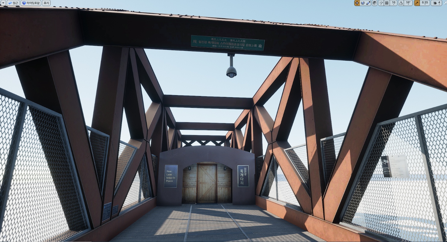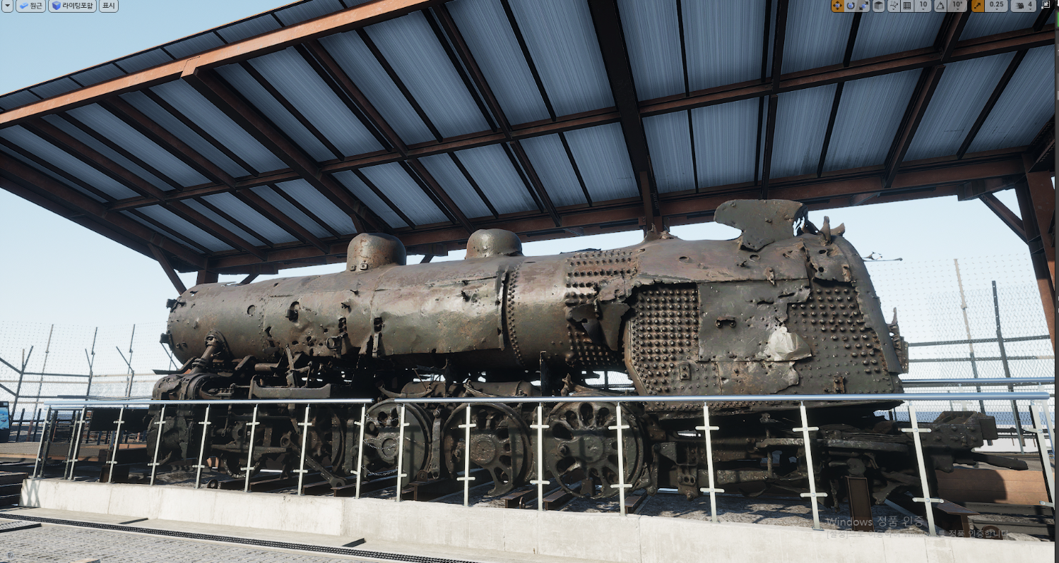 임진각 디지털 트윈의 제작 방식은 실제 장소를 3D스캐닝한 후 언리얼 엔진을 통해 재현하여 생생한 리얼리티를 담아냈습니다. 애셋의 작은 디테일들이 모여서, 실제 장소라고 해도 좋을 정도의 현장감을 연출하였습니다. 역사적인 의미를 담은 열차의 디테일한 부분까지 세밀하게 구현하여 전체적인 에셋의 완성도를 높였습니다.